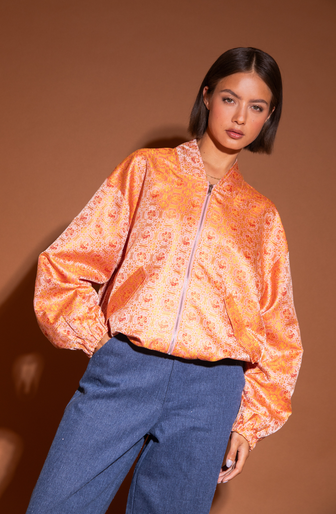 Product information: The Alice Bomber is another one of our faves! This is the must-have bomber. The print in combination with the orange color shades make this a real eye-catcher! The Bomber Jacket has two flap pockets. The cuffs and bottom have elastic, so you can style the bomber nicely.