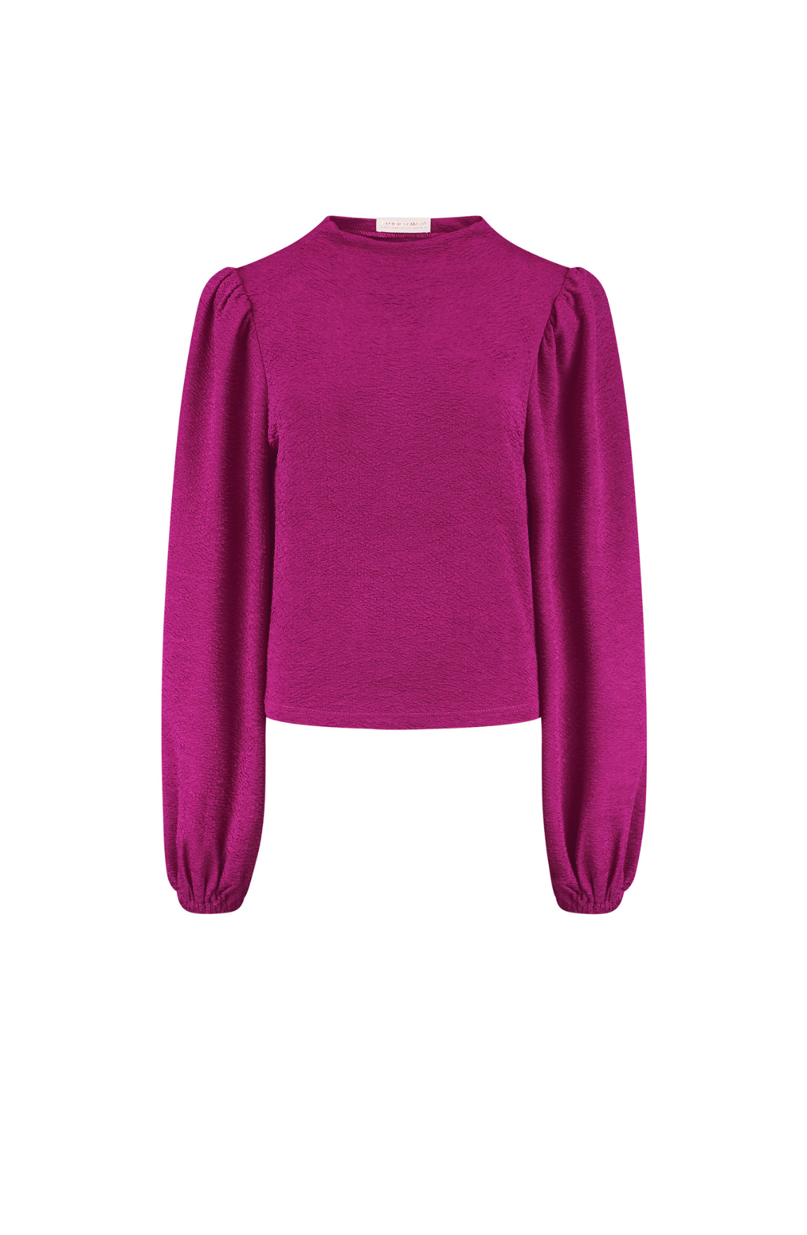 Product information: The Elsa Blouse is a beautiful top, with a higher fitted neck. The Fuchsia color makes the Mila Blouse unique. There is a light relief in the soft material which gives the top more depth.