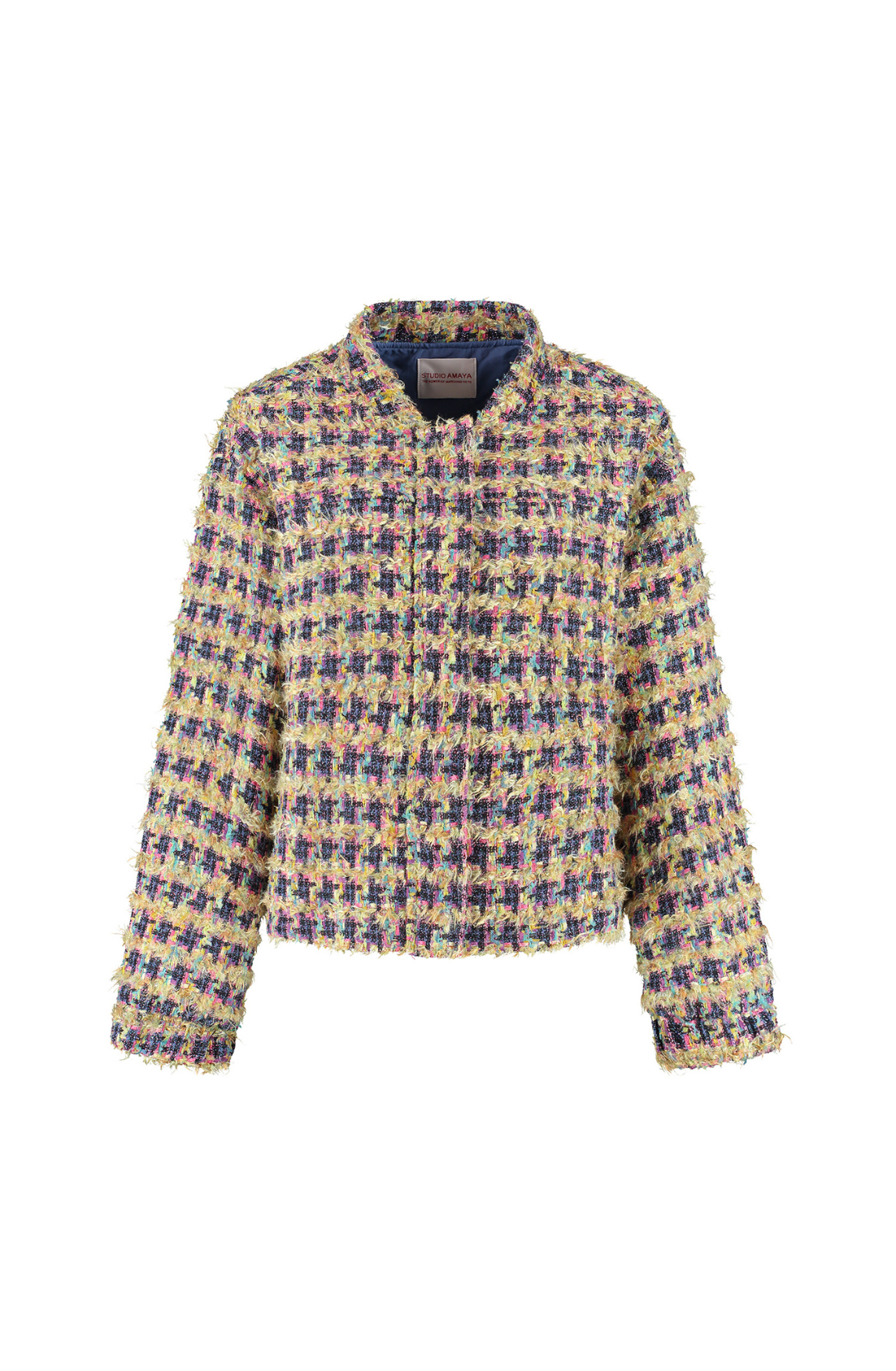 Product information: Shine bright in our Fleur bomber. The combination of the fun material and colors make this a very unique item in our Autumn collection. The Fleur bomber closes with a zipper and has a stand-up collar.