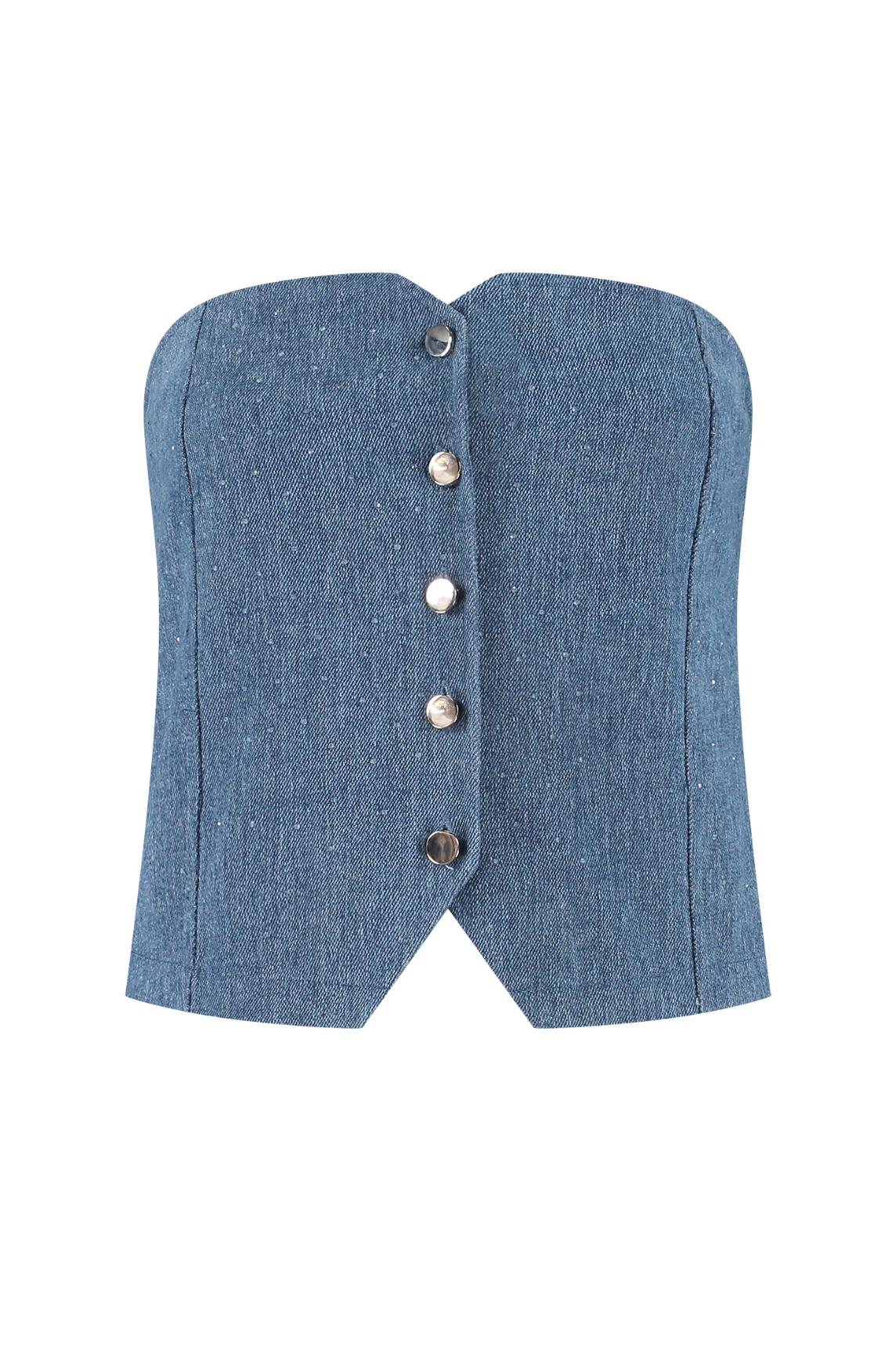 Product information: Denim will always be our fave style! How amazing is the Rachel Top, completely denim and all over small glitter stones. The Bandeau top has a button closure at the front.